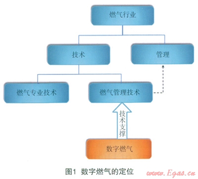 我們將燃?xì)夤镜墓ぷ黝I(lǐng)域劃分為技術(shù)與管理兩部分。在技術(shù)方面,又劃分為燃?xì)鈱I(yè)技術(shù)及燃?xì)夤芾砑夹g(shù)兩部分。燃?xì)夤芾砑夹g(shù)為燃?xì)夤镜慕?jīng)營(yíng)管理提供技術(shù)支持,數(shù)字燃?xì)馐侨細(xì)夤芾砑夹g(shù)的支撐技術(shù),為燃?xì)夤窘?jīng)營(yíng)管理提供數(shù)字化技術(shù)支持手段。圖1是數(shù)字燃?xì)庠谌細(xì)庑袠I(yè)中所處的定位的說(shuō)明。