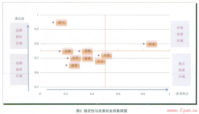 根據(jù)燃氣企業(yè)的資源現(xiàn)狀,各個服務項目滿足客戶需求的程度不一樣。可將需求的滿足程度分為較好滿足、基本滿足、有待提高3個梯度。