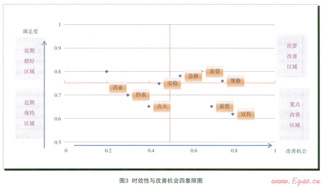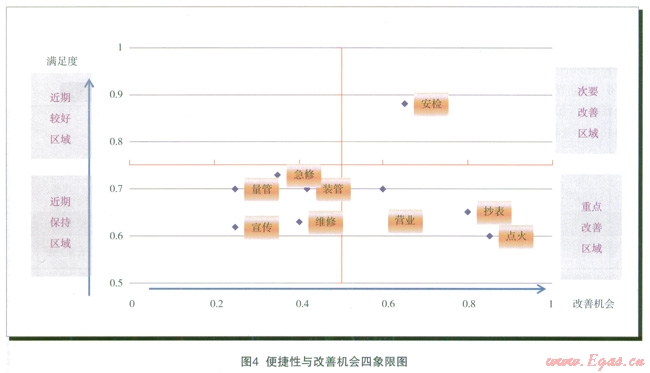 從穩(wěn)定性、時效性和便捷性與服務改善機會的象限圖,導出客戶關注的需求點,識別…近期服務的重點改善和次要改善機會兩方面內(nèi)容,采取相應的改進措施(見表2和表3)。