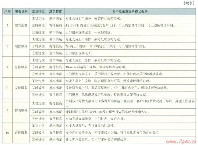 現(xiàn)有管道燃氣服務分類包括:供氣服務、營業(yè)服務、量管服務、裝管服務、點火服務、安檢服務、抄表服務、安全宣傳、急修服務、維修服務l0大類。