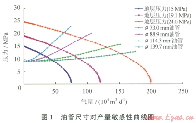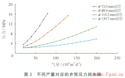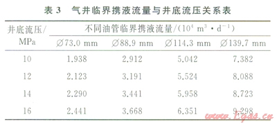如表4所示,無阻流量為200×104m3/d時,采用Æ139.7mm可以滿足86×104~126×104m3/d的采氣要求;無阻流量為80×104m3/d時,采用Æll4.3mm可以滿足35×104~65×104m3/d的采氣要求。