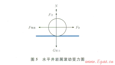 要確定單顆粒巖屑滾動前進最小氣液量則需要建立水平方向上的數(shù)學(xué)方程:
