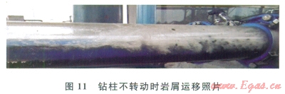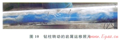 圖10、11分別為鉆柱轉(zhuǎn)動、鉆柱不轉(zhuǎn)動時的巖屑運移實驗現(xiàn)象。