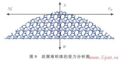 根據(jù)圖8中對巖屑顆粒的受力分析,忽略黏聚力和浮力的作用,堆積體顆粒極限受力平衡方程式可變形為:
