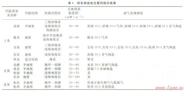 為此,筆者試圖從“源熱共控論” [11-13]的角度,討論瓊東南盆地各凹陷崖城組烴源巖的發(fā)育特征及地溫場特征,結(jié)合已發(fā)現(xiàn)油氣情況,以期對整個盆地各凹陷的潛力做初步預(yù)測與分類。