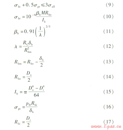 根據(jù)CJJ/T 8l—98《城鎮(zhèn)直埋供熱管道工程技術(shù)規(guī)程》,滿足內(nèi)壓要求的計算壁厚dC的計算式為: