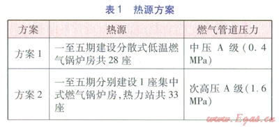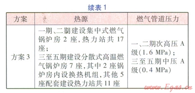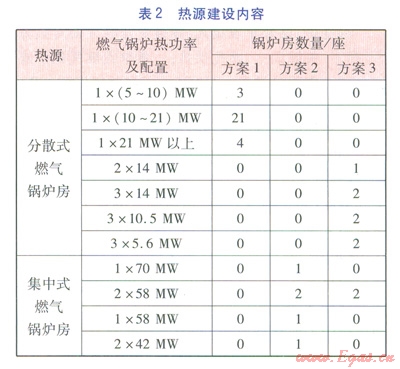 一般而言,熱源方案的確定是以“保障供熱安全,技術(shù)工藝合理,工程投資經(jīng)濟(jì),環(huán)保效益突出”為原則,從區(qū)域總體規(guī)劃及大氣污染治理的總體要求出發(fā),從技術(shù)、經(jīng)濟(jì)、工程實(shí)施可行性等多角度進(jìn)行比選。針對(duì)本工程的區(qū)域特點(diǎn),在常規(guī)的比選條件的基礎(chǔ)上,結(jié)合總體規(guī)劃的分期開發(fā)要求,提出了3種熱源方案進(jìn)行比選(見表l),3種方案均采用分期建設(shè)方式。