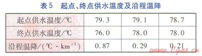 筆者獲取了3組測試管段起點、終點的供水溫度,以計算供水沿程溫降,供水溫度及沿程溫降見表5。由表5可知,隨著供水溫度的提高,供水沿程溫降呈上升趨勢。