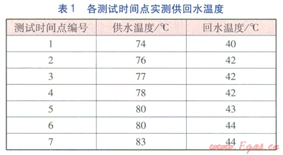 各測試時間點實測供回水溫度見表1,測試期間室外空氣溫度基本穩(wěn)定在-5.9℃。