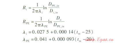 保溫層熱阻Ri、保護層熱阻RPE的計算式為: