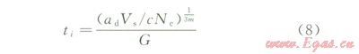 式中ti為誘導時間,s;ad為水合物結晶的體積與溶液體積的比值;Vs為溶液的初始體積,m3;Nc為微晶數(shù)量;m為與晶核生長相關的一個常數(shù),一般取值為0.5;G為增長常數(shù);As為初始接觸面面積,m2;kg為相關的吸附常數(shù),m3。