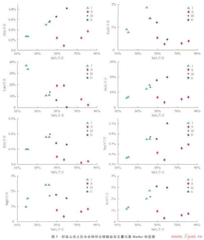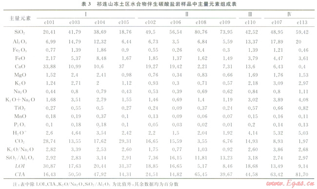 近幾年,在祁連山凍土區(qū)水合物科學(xué)試驗鉆探過程中,觀察到大量與水合物伴生的碳酸鹽礦物,這些伴生碳酸鹽礦物(或部分)是否與水合物存在著某種成因上的聯(lián)系,還不得而知。由于碳酸鹽礦物?;煊兴樾汲练e且難以與碎屑沉積分選開來,筆者以祁連山凍土區(qū)新近發(fā)現(xiàn)的與水合物伴生碳酸鹽礦物及其混雜的碎屑沉積(統(tǒng)稱碳酸鹽巖)為研究對象,從分析伴生碳酸鹽礦物所在沉積巖中主量元素、微量元素、稀土元素等特征入手,探討伴生碳酸鹽礦物可能物質(zhì)來源與沉積條件,試圖揭示不同產(chǎn)狀伴生碳酸鹽巖同水合物的內(nèi)在成因聯(lián)系。