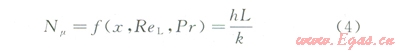 通過(guò)式(4)和(5)將對(duì)流換熱系數(shù)(h)的問(wèn)題,轉(zhuǎn)為解決努賽爾系數(shù)的問(wèn)題。