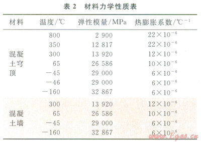 在外界溫度變化下,儲(chǔ)罐內(nèi)的LNG達(dá)到沸點(diǎn)蒸騰,從而產(chǎn)生氣壓。為保護(hù)混凝土外罐免受不斷增加的氣壓作用,需通過(guò)穹頂上部的安全閥將超壓的LNG蒸氣排出。在此過(guò)程中,LNG蒸氣或被點(diǎn)燃發(fā)生火災(zāi)。在這種偶然工況下,國(guó)內(nèi)現(xiàn)有的混凝土規(guī)范尚無(wú)規(guī)定,而國(guó)外的ENl473等規(guī)范僅給出一般性的條款,沒(méi)有具體的計(jì)算公式。所以發(fā)生安全閥火災(zāi)時(shí),儲(chǔ)罐各部位的溫度怎么分布?火災(zāi)導(dǎo)致的混凝土熱應(yīng)變是否達(dá)到了極限應(yīng)變等,這些需借助大型有限元軟件進(jìn)行詳細(xì)的熱力學(xué)分析才能得到,指導(dǎo)后續(xù)設(shè)計(jì)工作。