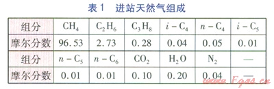 某城市的天然氣門(mén)站需將壓力為5.0MPa,溫度為25℃,流量為7.0×104m3/h(標(biāo)態(tài)為15.56℃,101325Pa)的高壓天然氣降壓到0.2MPa,其調(diào)壓過(guò)程采用圖l所示的天然氣部分液化調(diào)峰型LNG生產(chǎn)工藝流程。進(jìn)站天然氣組成見(jiàn)表1。