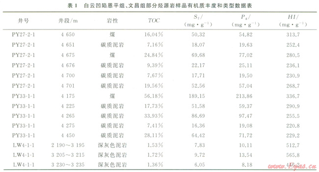 白云凹陷面積超過(guò)20000km2,主要發(fā)育始新統(tǒng)文呂組和恩平組湖相、淺湖—沼澤相、三角洲相烴源巖。從白云凹陷邊緣到沉積中心,文昌組烴源巖(暗色泥巖)厚度介于200~1700m,恩平組烴源巖厚度介于200~1300m[8]。