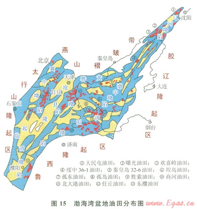 渤海灣盆地油氣勘探大規(guī)模始于20世紀(jì)50年代;60-80年代是陸地區(qū)油田發(fā)現(xiàn)的高潮期,先后發(fā)現(xiàn)了勝利油田、大港油田、華北油田、遼河油田、中原油田;20世紀(jì)80年代以來(lái),渤海海域接連發(fā)現(xiàn)一批大油田。渤海灣盆地目前已發(fā)現(xiàn)數(shù)百個(gè)油田及一批中小氣田;原油儲(chǔ)量累計(jì)上百億噸,天然氣儲(chǔ)量累計(jì)約2000×108m3,主要是溶解氣;石油主要形成于新生界,氣層氣主要形成于古生界;呈現(xiàn)出原油非常富、天然氣相對(duì)少的格局。