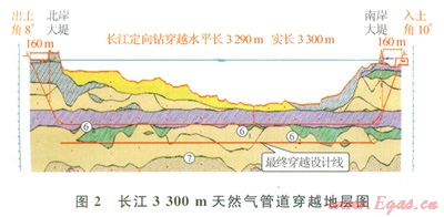 3300m長江天然氣管道穿越項(xiàng)目所穿越地層如圖2所示。