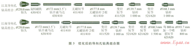5)改進(jìn)技術(shù)細(xì)節(jié)。改進(jìn)控向線在鉆桿內(nèi)的固定方式,避免了在長距離管道穿越過程中高速流動的鉆井液對控向線長時間沖刷而引發(fā)的短路現(xiàn)象。合理配置噴漿短節(jié)的數(shù)量以及水嘴孔徑,使得在保持充分潤滑孔壁、減少摩擦阻力的同時,保證了鉆井液馬達(dá)的工作效率,提高了鉆進(jìn)速度,縮短了導(dǎo)向孔的施工時間。