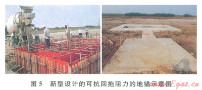 1)設(shè)計(jì)特殊地錨。通過計(jì)算回拖阻力,設(shè)計(jì)了專門針對大噸位回拖阻力的地錨(圖5),以抵抗大的回拖阻力。