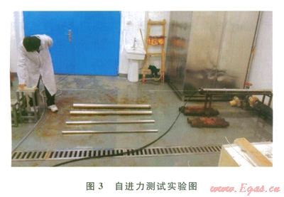 用以下實(shí)驗(yàn)方法研究多孔射流鉆頭自進(jìn)力的影響規(guī)律:①改變柴油機(jī)轉(zhuǎn)數(shù)的方法來(lái)調(diào)節(jié)泵排量,研究流量參數(shù)對(duì)射流鉆頭自進(jìn)力的影響規(guī)律;②更換多孔射流鉆頭的方法來(lái)改變射流鉆頭正反流量比,研究正反流量比參數(shù)對(duì)射流鉆頭自進(jìn)力的影響規(guī)律;③調(diào)節(jié)射流鉆頭與模擬井底之間的距離,研究正向噴距參數(shù)對(duì)多孔射流鉆頭自進(jìn)力的影響規(guī)律;④更換模擬井筒的方法來(lái)改變井簡(jiǎn)直徑,研究井筒直徑參數(shù)對(duì)多孔射流鉆頭自進(jìn)力的影響規(guī)律。