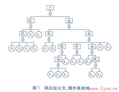 事故樹(shù)分析法作為一種工程系統(tǒng)可靠性分析與評(píng)價(jià)的有效方法,可快速、全面、形象、簡(jiǎn)明地分析各種影響因素的相互關(guān)系,為分析調(diào)壓站火災(zāi)、爆炸事故原因提供了有效手段[2-6]。本文對(duì)事故樹(shù)分析法在調(diào)壓站事故原因分析的應(yīng)用進(jìn)行探討。