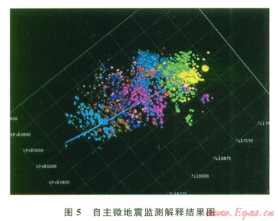 通過實時微地震監(jiān)測技術的應用,對于完成壓裂施工、優(yōu)選射孔井段、優(yōu)化參數(shù)及提高產(chǎn)能具有很好的指導性[12]。本地區(qū)頁巖氣水平井壓裂微地震監(jiān)測結果表明,壓裂裂縫延伸方向受地應力與天然裂縫雙重因素控制,已實施井微地震監(jiān)測結果表明實現(xiàn)了形成復雜裂縫網(wǎng)絡的體積壓裂目標,表明水平井分段體積壓裂工藝可滿足頁巖氣水平井改造要求(圖5)。