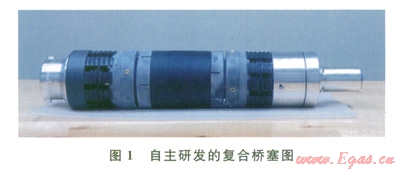 復合橋塞是實現(xiàn)水平井分段壓裂段間封隔的有效工具,復合橋塞具有作業(yè)效率高(一趟作業(yè)管柱完成射孔及坐封橋塞)、易鉆(通常30min以內(nèi))等特點。通過自主攻關研制出速鉆復合橋塞工具,能滿足頁巖氣水平井分段壓裂改造的需求(圖1),工具指標為:①適用井眼尺寸有Æ114.3mm、Æl27.0mm、Æ139.7mm等套管完井;②耐溫,達150℃;③承受工作壓差為70MPa;④分段數(shù)不受井筒條件限制。