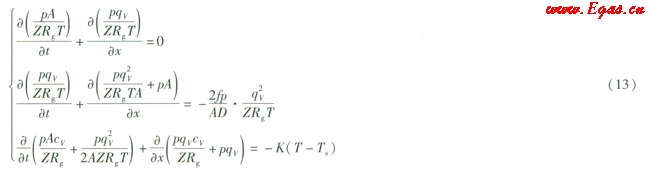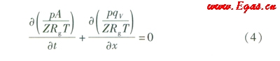 氣體在管道內(nèi)流動(dòng)的連續(xù)性方程可由式(1)表示[2]: