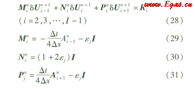 可采用Tomas開發(fā)的TDMA算法對(duì)上面的三對(duì)角方程組進(jìn)行求解。TDMA算法可參考相關(guān)文獻(xiàn)。