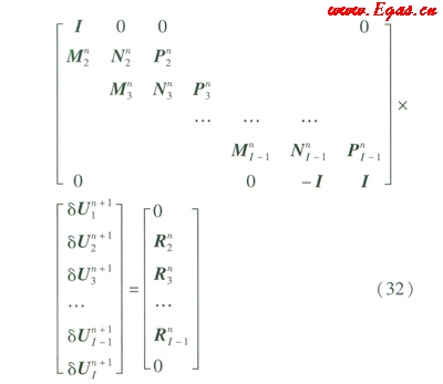 引進(jìn)符號(hào)dUin+1=Uin+1-Uni,則式(18)變?yōu)槭?span lang="EN-US" style="margin: 0px; padding: 0px;">(25):