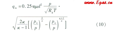 泄漏點(diǎn)處氣流處于亞臨界泄漏階段,管道泄漏率方程為式(10) [5]: