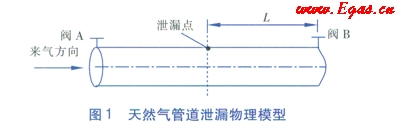 天然氣管道泄漏一般為孔口泄漏,如圖1所示,管內(nèi)氣體流經(jīng)孔口的泄漏過程為等熵流動(dòng)過程。圖1中,閥A、閥B為天然氣管道的截?cái)嚅y,泄漏點(diǎn)位于兩個(gè)截?cái)嚅y之間,且與閥B的距離為L。