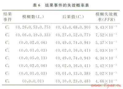 最后為了保證所有事件的真實(shí)概率和模糊概率之間的一致性,還需要將模糊可能值轉(zhuǎn)化為模糊失效概率FFR(Fuzzy Failure Rate) [11]: