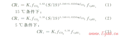 式中Kt為常數(shù),與溫度和腐蝕產(chǎn)物膜相關(guān);S為管壁切應(yīng)力,Pa;fCO2為CO2的逸度,bar;f(PH)t為pH值對腐蝕速率的影響因子。對于實際工況溫度下的腐蝕速率可通過在所測溫度及所規(guī)定溫度值問作線性插值得到。Norsok M506腐蝕模型是以實驗數(shù)據(jù)為基礎(chǔ)而建立的,對于腐蝕過程中化學(xué)及電化學(xué)反應(yīng)的熱力學(xué)及動力學(xué)等機理考慮過少,可以用于預(yù)測材料的均勻腐蝕速率。