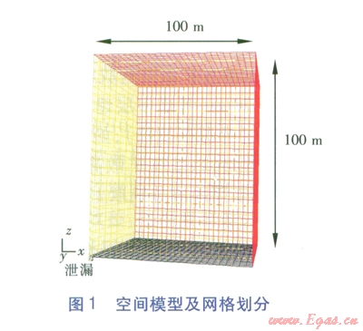 空間模型(見圖l)長200m、寬200m、高l00m,在200m×200m的平面中心設置1個2m×2m