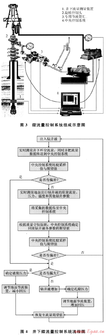 隨著油氣勘探開發(fā)難度的加大,人們相繼發(fā)展了雙梯度鉆井、泥漿帽鉆井、井底恒壓鉆井等各種控壓鉆井(MPD)方式來滿足復(fù)雜地區(qū)鉆井的需要[1~3]。目前控壓鉆井按照控制對象,可分為環(huán)空壓力剖面控制和環(huán)空流量控制兩類,上述幾種MPD都屬于環(huán)空壓力剖面控制,而微流量控制方法則屬于環(huán)空流量控制。相較于監(jiān)測環(huán)空壓力,對環(huán)空流量的監(jiān)測能極大地提高溢流、井漏等井下復(fù)雜情況監(jiān)測的準(zhǔn)確性和靈敏性。而對于環(huán)空流量監(jiān)測本身(尤其針對氣井),在地面監(jiān)測和在井下監(jiān)測也存在著很大的差別,直接影響到一口井后續(xù)井控的能力,甚至關(guān)系到鉆井作業(yè)的成敗。本文介紹的井下微流量控制方法能夠隨鉆監(jiān)測井下環(huán)空流量的變化,進(jìn)而調(diào)節(jié)井口回壓閥的開度,通過改變井底壓力來控制溢流或井漏的大小,從而實現(xiàn)對環(huán)空流量的控制。