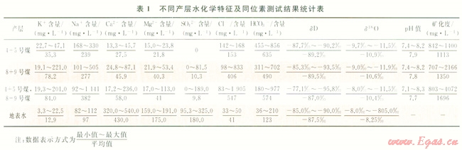 該區(qū)煤層氣井主要采用4+5號煤層和8+9號煤層分壓合排,少量井為單層排采,不同產層煤層氣井產出水水化學及同位素測試結果見表1。總體而言,無論是單采4+5號煤層,還是單采8+9號煤層,或者兩套煤層同時開采,處于同一區(qū)域的煤層氣井產出水離子組成差異都較小,但不同地區(qū)煤層氣井產出水陰、陽離子組成差異則較大。