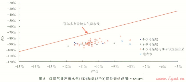 2.3 煤層氣井產出水氘(dDH2O)和氧(d18OH2O)同位素組成特征