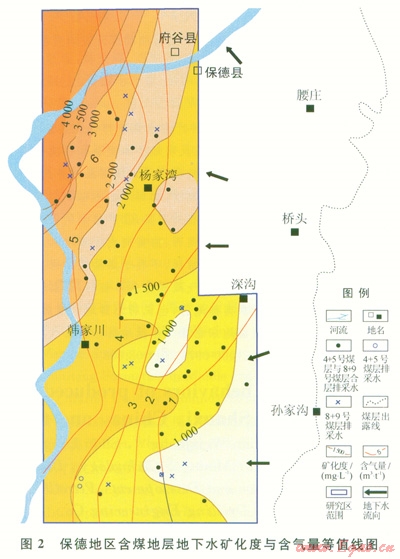 鄂爾多斯盆地東北緣保德地區(qū)是我國第一個投入開發(fā)的中低煤階煤層氣區(qū)。該區(qū)發(fā)育厚煤層,含氣量低 中等,具有解吸壓力高、含氣飽和度高的特點[1],對其水動力分布規(guī)律及其控氣作用還需要進一步認識。為此,筆者采集了大量煤層氣井產出水樣品,對其化學特征及變化規(guī)律進行分析,以揭示地下水的動力環(huán)境及其控氣作用,為該區(qū)的煤層氣勘探開發(fā)提供依據。