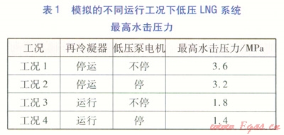 Keywords:LNG terminal;reeondenser:low pressure system;water hammer simulation
