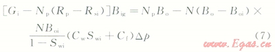 3)地面累積產(chǎn)水量為Wp,而在p壓力下的地下體積量為WpBw,Bw為p壓力下地層水的體積系數(shù)。