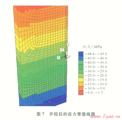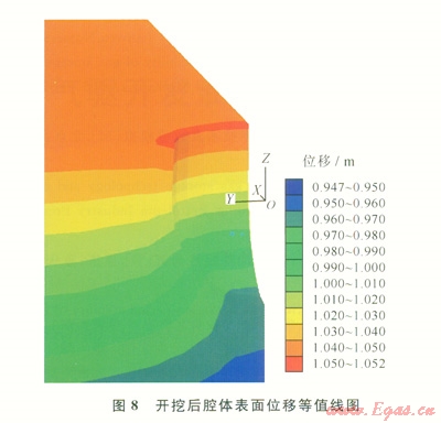 利用空模型形成腔體模型,通過(guò)設(shè)置groupl為空模型進(jìn)行開(kāi)挖,開(kāi)挖后的模型如圖7、8所示。