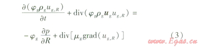 式中ug,R——氣相速度在尺方向的分量,m/s