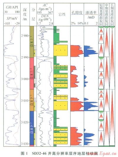 高分辨率層序地層學(xué)的核心是“在基準(zhǔn)面旋回變化過程中,由于可容納空間與沉積物補(bǔ)給通量比值的變化,相同沉積體系域或相域中發(fā)生沉積物的體積分配作用和相分異作用,導(dǎo)致沉積物的保存程度、沉積物堆積樣式、相序、相類型及演示結(jié)構(gòu)和組合類型發(fā)生變化”[19]。而等時(shí)層序地層格架的建立,則是為了對(duì)儲(chǔ)集砂體時(shí)空展布規(guī)律的三維預(yù)測(cè)和定量評(píng)價(jià)服務(wù)。其中各級(jí)沉積物的堆積樣式(包含沉積物自身形態(tài)及其疊置關(guān)系的三維展布形態(tài))以及砂體的預(yù)測(cè)及定量評(píng)價(jià)正是儲(chǔ)層構(gòu)型研究的主要內(nèi)容,此外各級(jí)次的構(gòu)型界面均是在三級(jí)層序內(nèi)部進(jìn)行識(shí)別和劃分的。由此看來,基準(zhǔn)面旋回的變化對(duì)砂體的構(gòu)型有著重要的控制作用。