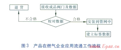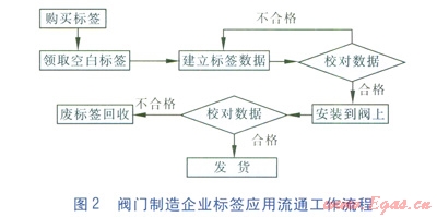 標(biāo)簽在閥門制造企業(yè)實(shí)現(xiàn)應(yīng)用流通的工作流程和產(chǎn)品在燃?xì)馄髽I(yè)應(yīng)用流通的工作流程見圖2、3。