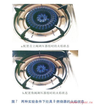 研究分析直立閥調(diào)壓器組的調(diào)壓性能,比較兩種閥門調(diào)壓器組對灶具燃燒器火焰狀態(tài)、灶具熱效率的影響。