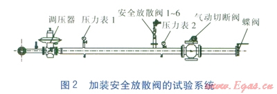 在調(diào)壓器和氣動(dòng)切斷閥之間安裝6個(gè)安全放散并,測(cè)壓點(diǎn)選在安全放散閥下游的壓力表2處,用戶(hù)用氣設(shè)備切斷閥采用氣動(dòng)切斷閥進(jìn)行模擬。