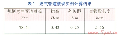 接著分別計算彎曲管道的拱高、彎管外矢距和彎管彎曲段間直管段長度,并將計算結(jié)果列于表1。