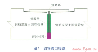 頂管設計參照北京鐵路局(京橋通—5002)《鐵路頂管通用圖》。頂進管道采用鐵路專用雙插口鋼筋混凝土圓管,規(guī)格為Ø1750mm Ti-S,編號為T12,每節(jié)長3m,管壁厚度為175mm,圓管結構控制頂力為7450kN,頂進時需在圓管外壁涂石蠟減阻。圓管管口接縫見圖1。